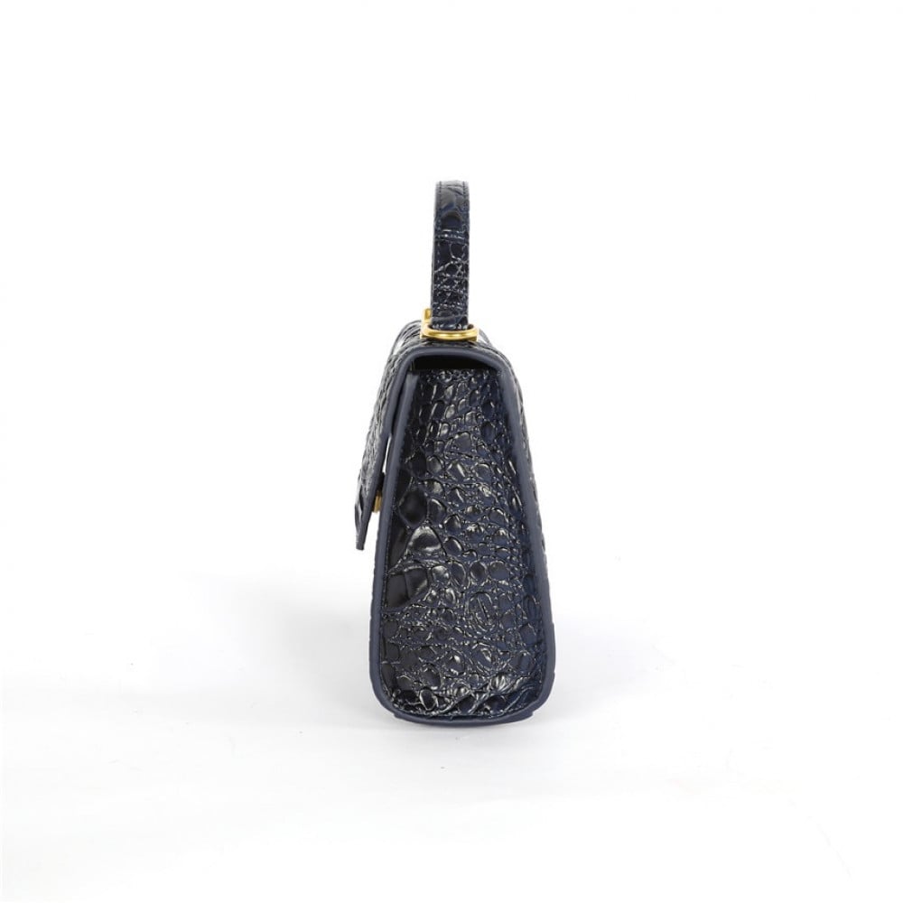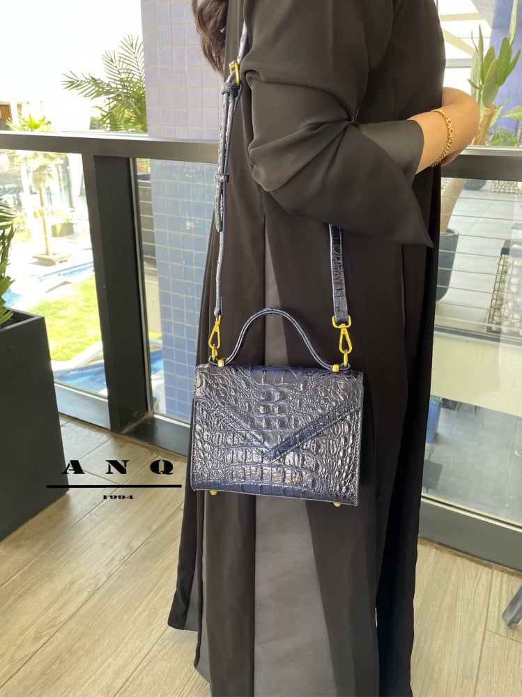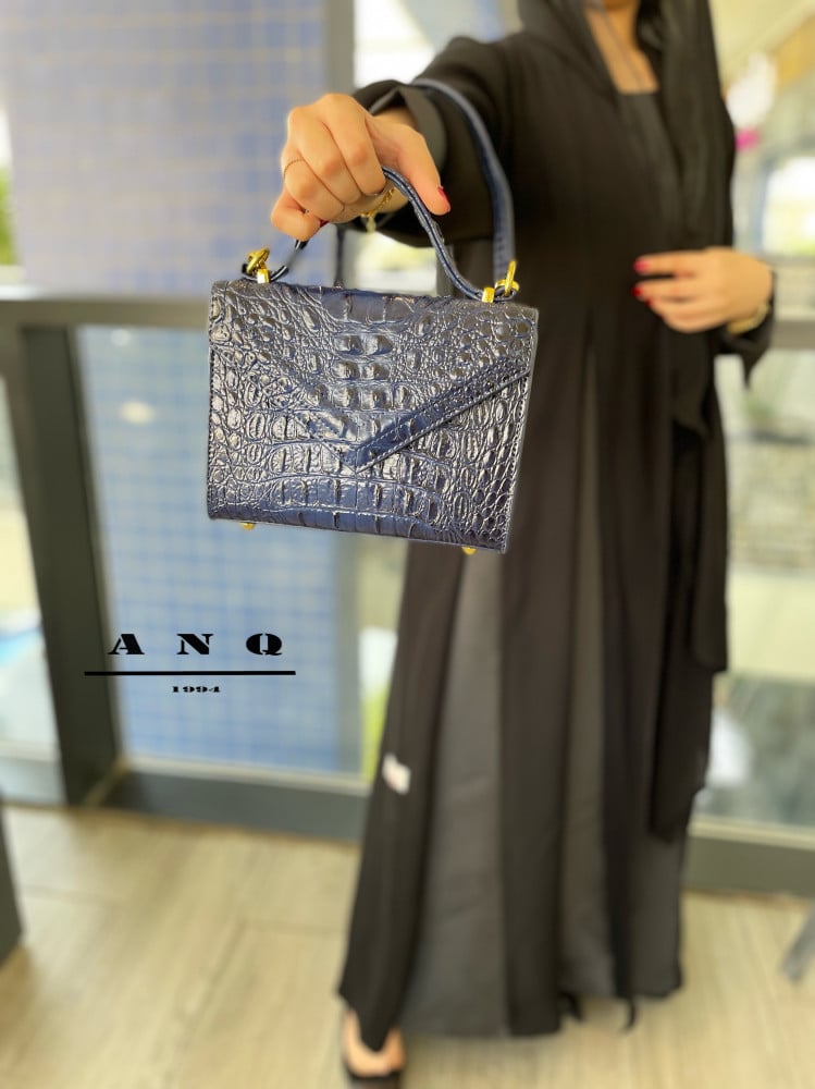 حقيبة اليد المربعة تمتاز بأناقة في بساطتها وفخامة في تصميمها.