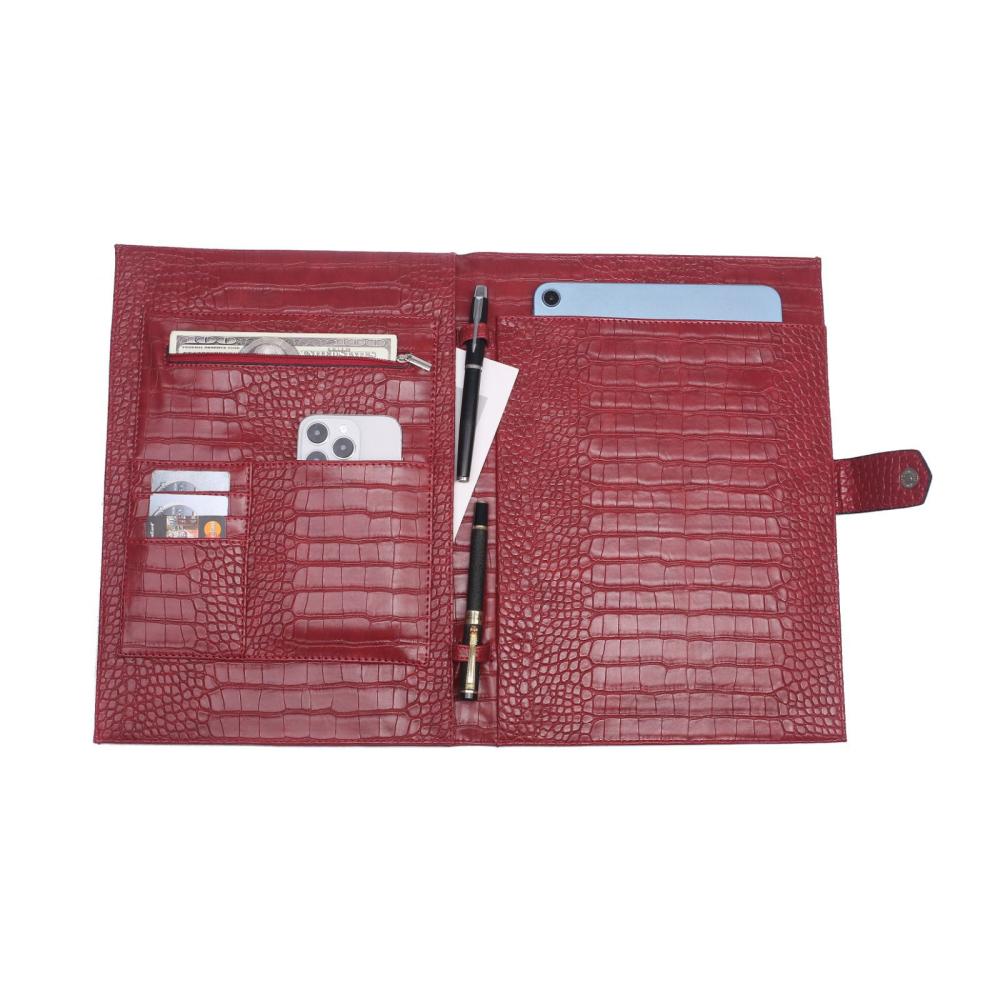 يتيح لك هذا الملف الجلدي تخزين الآيباد والمستندات بشكل آمن ومنظم، مع مساحة إضافية للبطاقات والأوراق الهامة. يتميز بتصميم داخلي فاخر مبطن بالنسيج لحماية جهازك من الخدوش والصدمات. إنه ملحق لا غنى عنه للأشخاص الذين يحتاجون إلى حمل أجهزتهم بأناقة وتنظيم مع الحفاظ على الجاذبية الراقية.