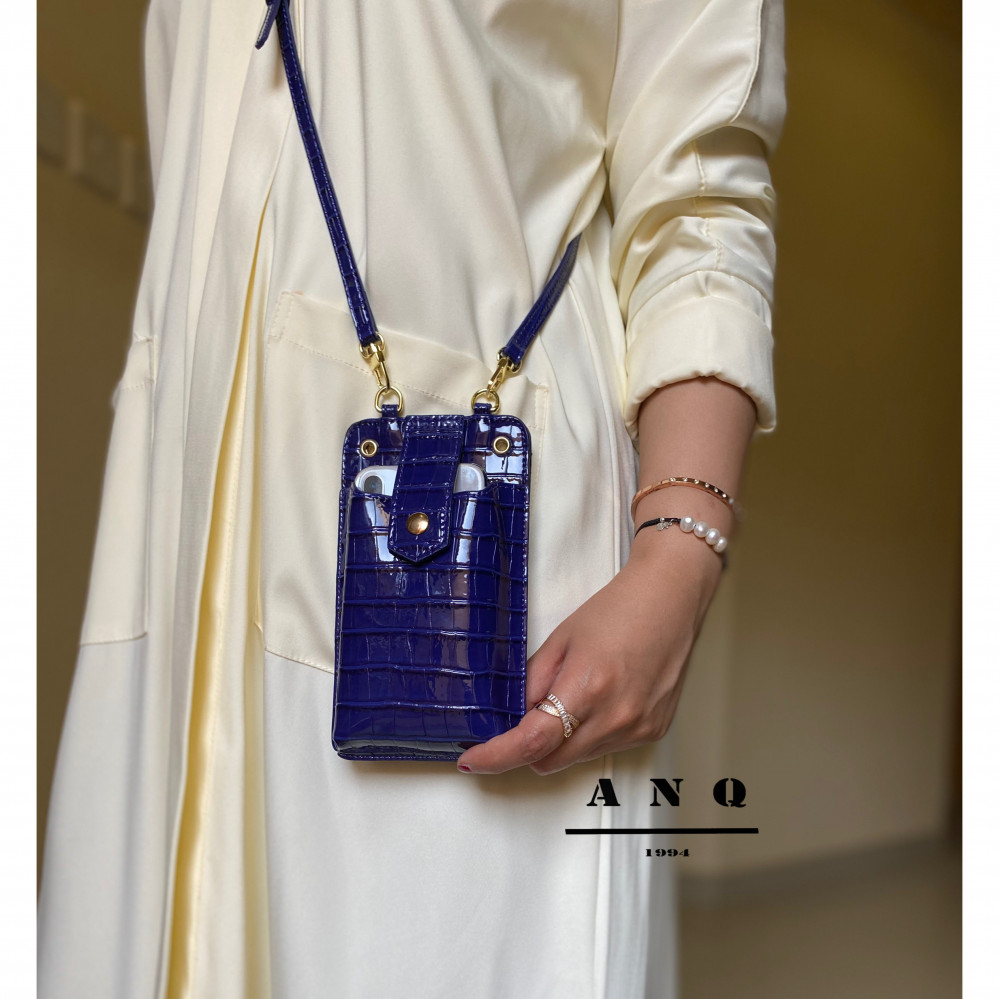 احمل جوالك بأناقة وتنظيم مع حاملة الجوال والبطاقات Crocodile navy - لأن الأناقة والعملية تجتمع في تصميم واحد!"